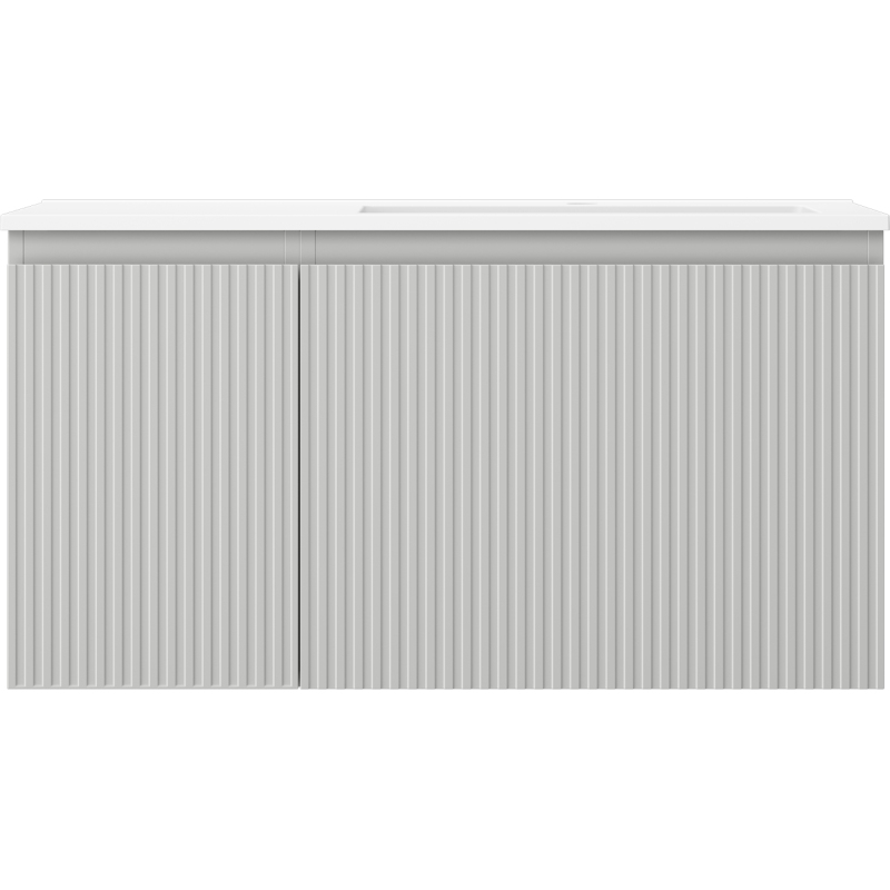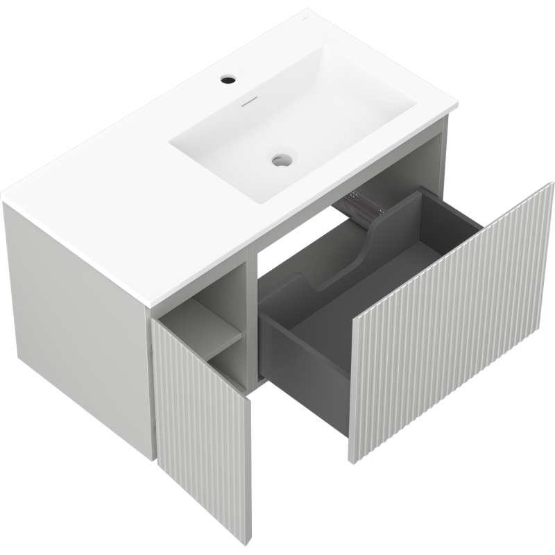 Koupelnová skříňka Mexen Rivel 90 cm s umyvadlem Otis pravé, 1S, 1D, drážkovaná, matná šedá/matná bílá - 91A23-09047-3-BBFF62-W18P01