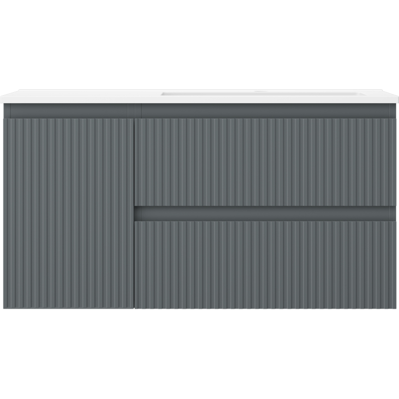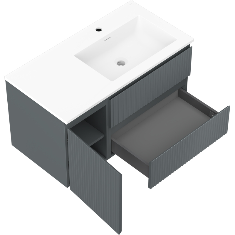Koupelnová skříňka Mexen Rivel 90 cm s umyvadlem Otis pravým, 2S, 1D, drážkovaná, grafit/matná bílá - 91A23-09047-3-BBFFF66-W18P01