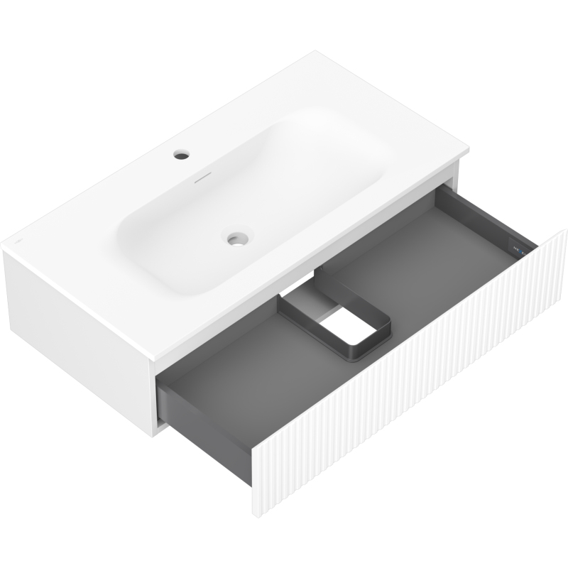 Koupelnová skříňka Mexen Rivel 90 cm s umyvadlem Vela, 1 zásuvka, drážkovaná, matná bílá - 91A20-09023-1-BF01-W23M01