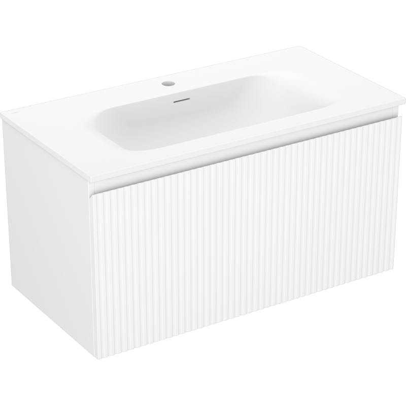 Koupelnová skříňka Mexen Rivel 90 cm s umyvadlem Vela, 1 zásuvka, drážkovaná, matná bílá - 91A20-09047-1-BF01-W23M01