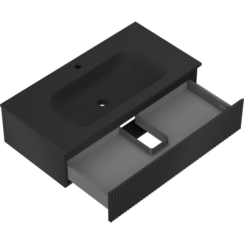 Koupelnová skříňka Mexen Rivel 90 cm s umyvadlem Vela, 1 zásuvka, drážkovaná, matná černá - 91A20-09023-1-BF71-W23M71