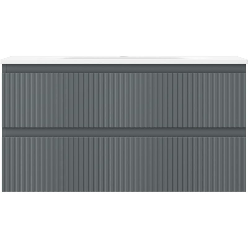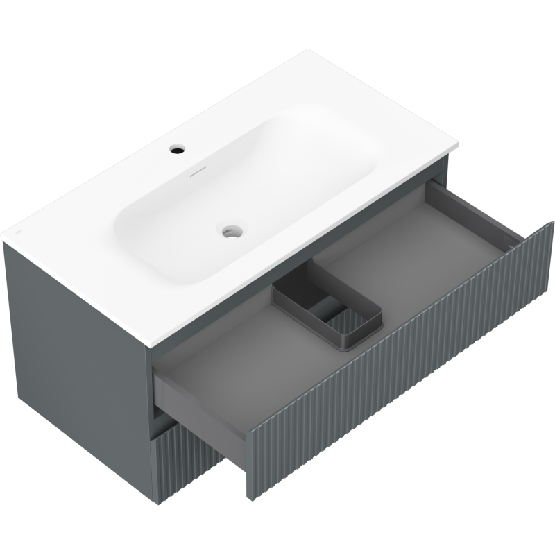 Koupelnová skříňka Mexen Rivel 90 cm s umyvadlem Vela, 2 zásuvky, drážkovaná, grafit matný/bílá matná - 91A20-09047-2-BFF66-W23M0