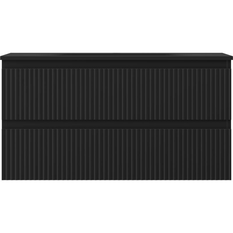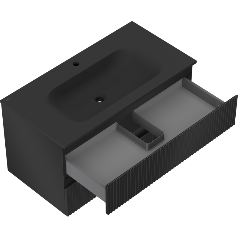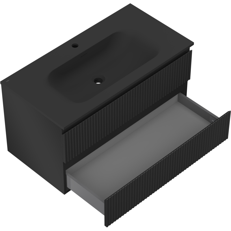 Koupelnová skříňka Mexen Rivel 90 cm s umyvadlem Vela, 2 zásuvky, drážkovaná, matná černá - 91A20-09047-2-BFF71-W23M71