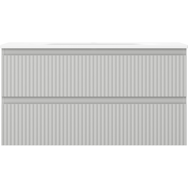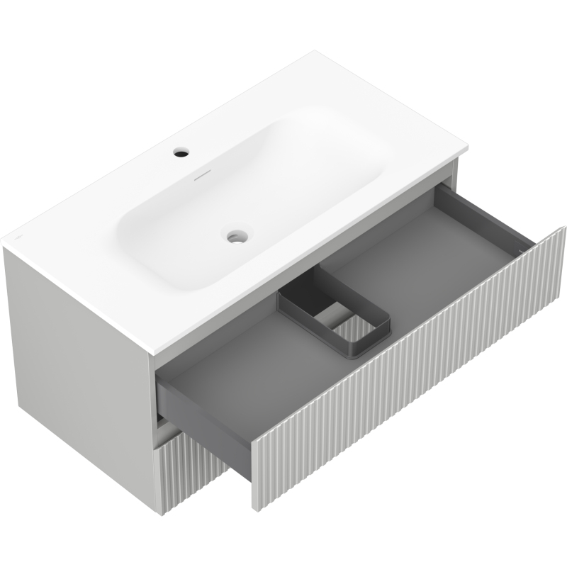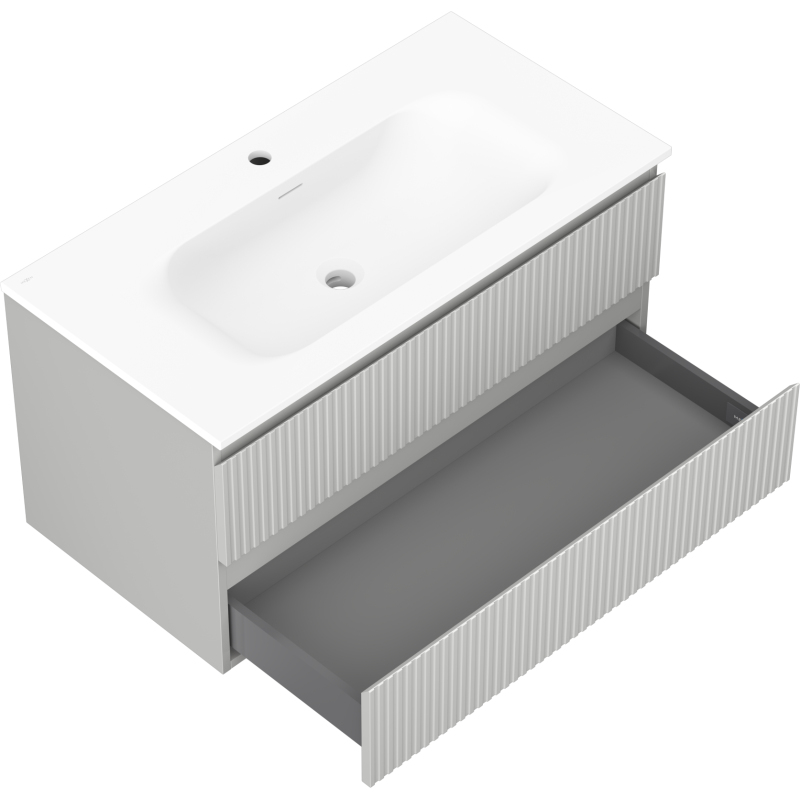 Koupelnová skříňka Mexen Rivel 90 cm s umyvadlem Vela, 2 zásuvky, drážkovaná, matně šedá/matně bílá - 91A20-09047-2-BFF62-W23M01