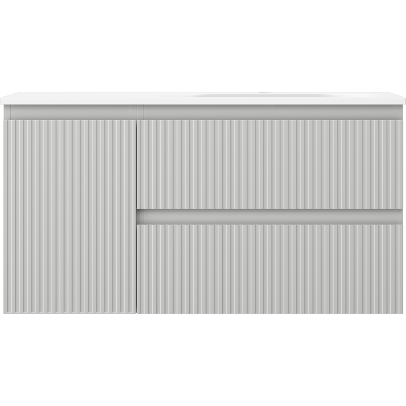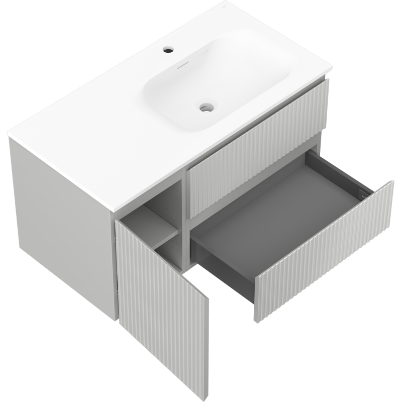 Koupelnová skříňka Mexen Rivel 90 cm s umyvadlem Vela pravá, 2S, 1D, drážkovaná, matná šedá/matná bílá - 91A23-09047-3-BBFFF62-W23P01