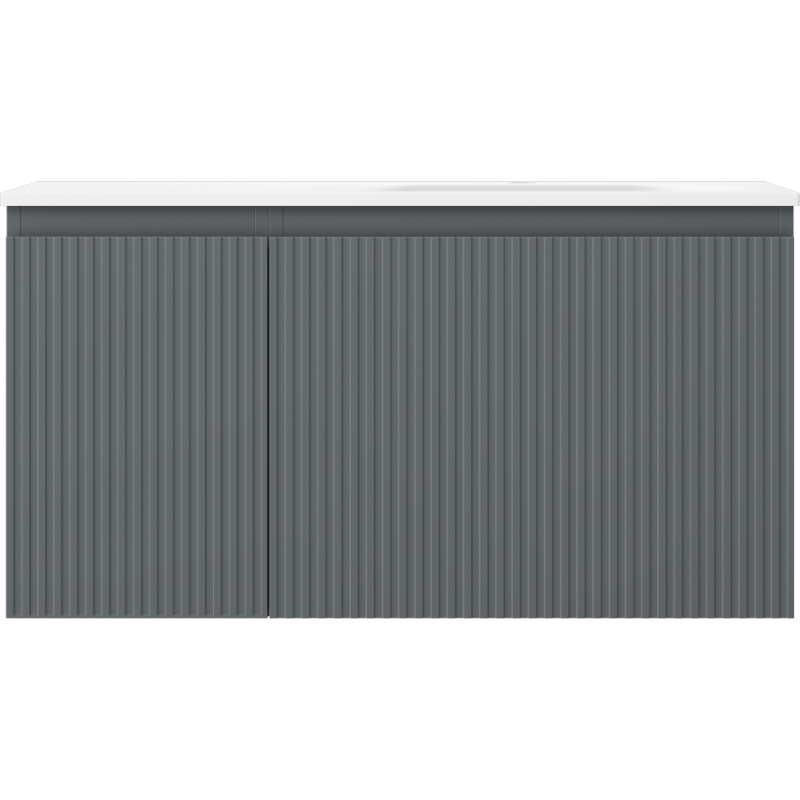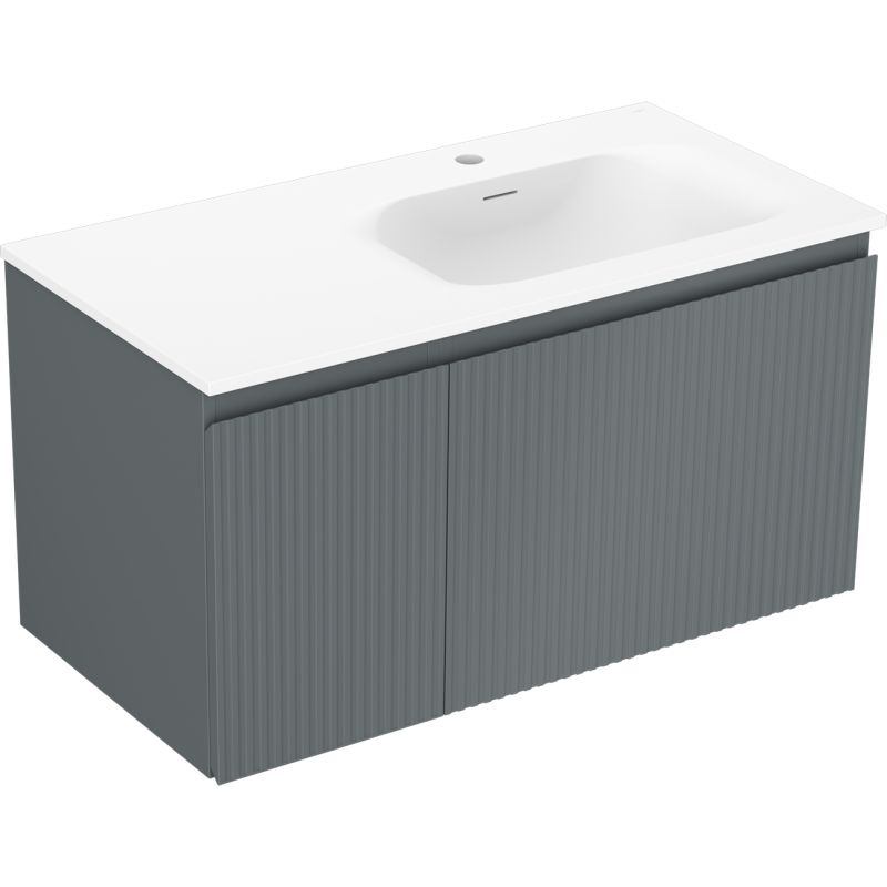 Koupelnová skříňka Mexen Rivel 90 cm s umyvadlem Vela pravé, 1S, 1D, drážkovaná, grafit matný/bílá matná - 91A23-09047-3-BBFF66-W23P01