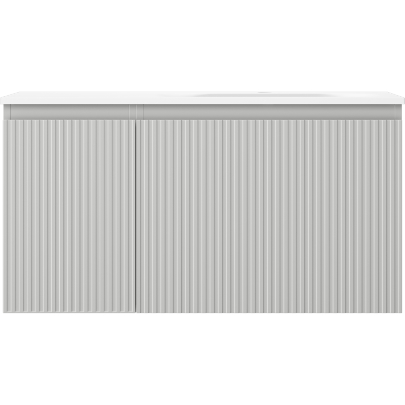 Koupelnová skříňka Mexen Rivel 90 cm s umyvadlem Vela pravé, 1S, 1D, drážkovaná, matná šedá/matná bílá - 91A23-09047-3-BBFF62-W23P01