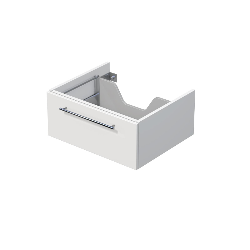 Závěsná koupelnová skříňka pod desku v bílé barvě s matným povrchem o rozměru 60x26x50 cm. S lakovaným povrchem s úpravou proti zanechání otisků prstů. S plnovýsuvem a dotahem.