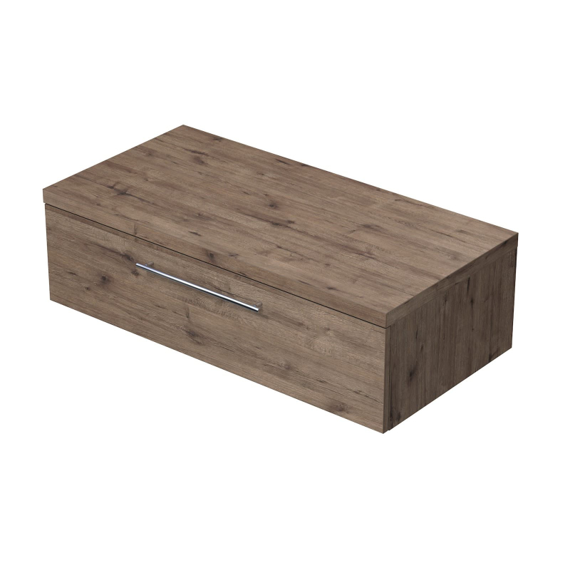 Závěsná koupelnová skříňka pod umyvadlo v provedení dub wellington o rozměru 100x29,6x50 cm. Povrch v provedení lamino. S plnovýsuvem a dotahem.