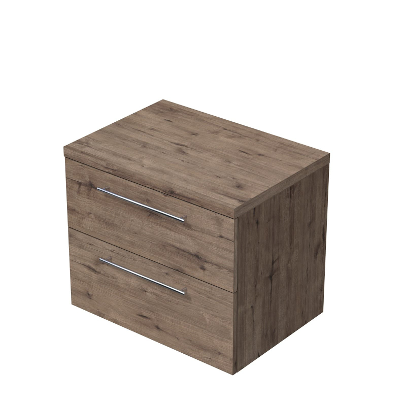 Závěsná koupelnová skříňka pod umyvadlo v provedení dub wellington o rozměru 70x59,6x50 cm. Povrch v provedení lamino. S plnovýsuvem a dotahem.