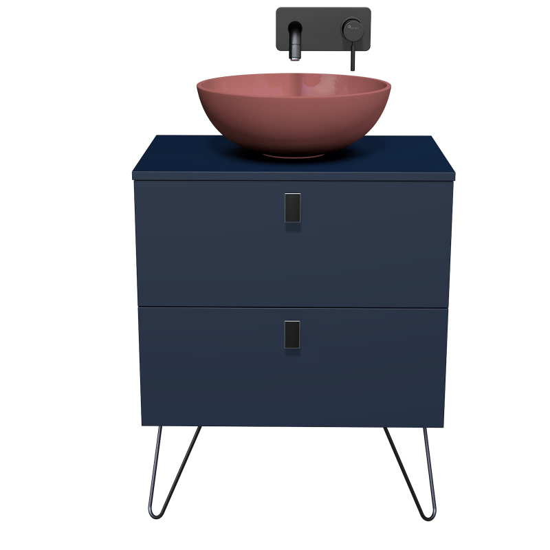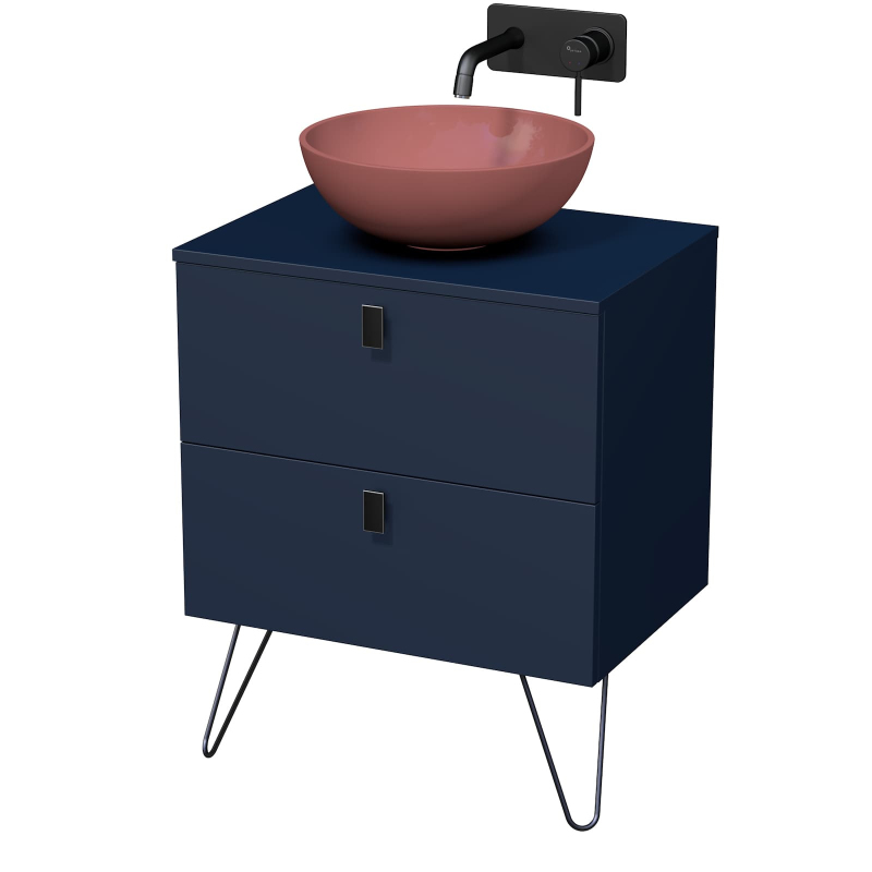 Závěsné koupelnová skříňka pod umyvadlo v barevném provedení námořnická modrá s matným povrchem o rozměru 60x78,8x45,5 cm. S lakovaným povrchem s úpravou proti zanechání otisků prstů.