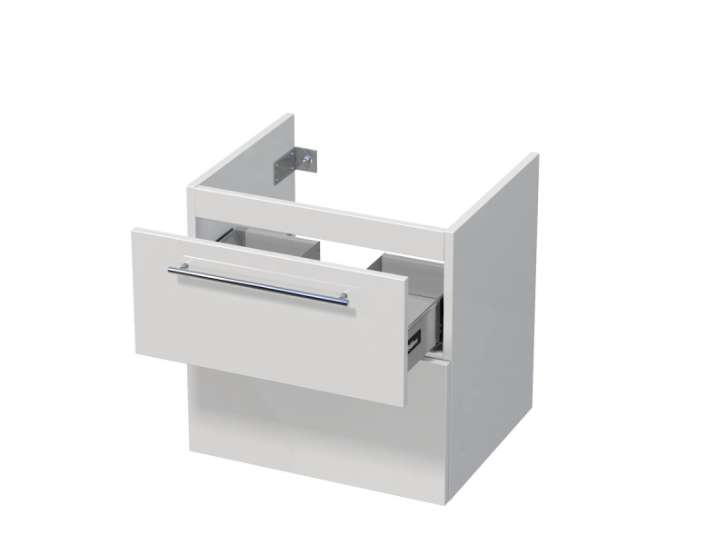 Závěsná koupelnová skříňka pod umyvadlo Laufen Pro S 1096.3.000.104.1 v bílé barvě s lesklým povrchem o rozměru 56x56x44 cm. S lakovaným povrchem. Plnovýsuv s dotahem, 2 zásuvky, pro úchytku 320 mm.