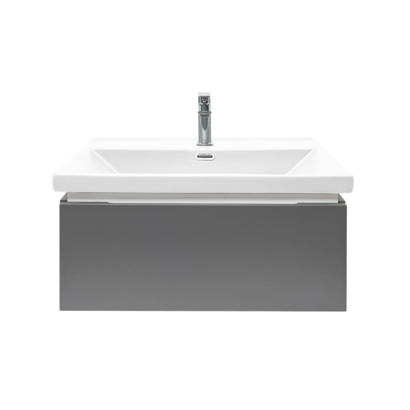 Závěsná koupelnová skříňka s keramickým umyvadlem v antracitové barvě s matným povrchem o rozměru 60x30x44,8 cm. Povrch v provedení lamino.