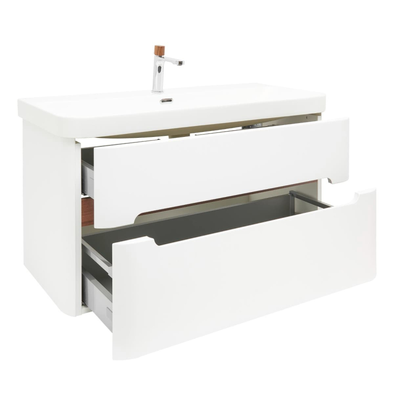 Koupelnová skříňka s umyvadlem a baterií SAT Fusion 97,5x53x45 cm bílá matná mat SATFUSION2100WMWBA