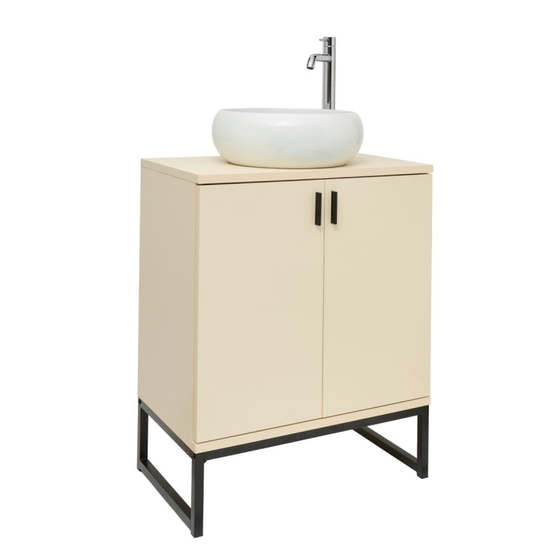 Stojící koupelnová skříňka s keramickým umyvadlem v barevném provedení jasmín s matným povrchem o rozměru 60x73x36 cm. S povrchem z MDF desky. Dvířka mají levé i pravé otevírání.