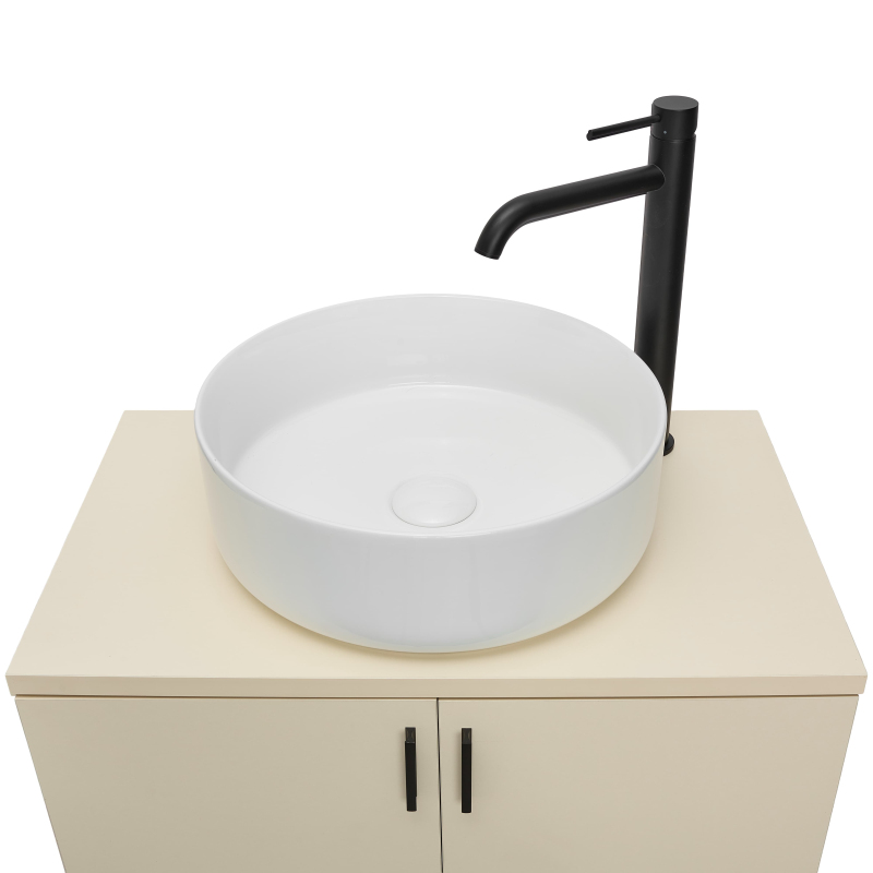 Stojící koupelnová skříňka s keramickým umyvadlem v barevném provedení jasmín s matným povrchem o rozměru 60x73x36 cm. S povrchem z MDF desky. Dvířka mají levé i pravé otevírání.