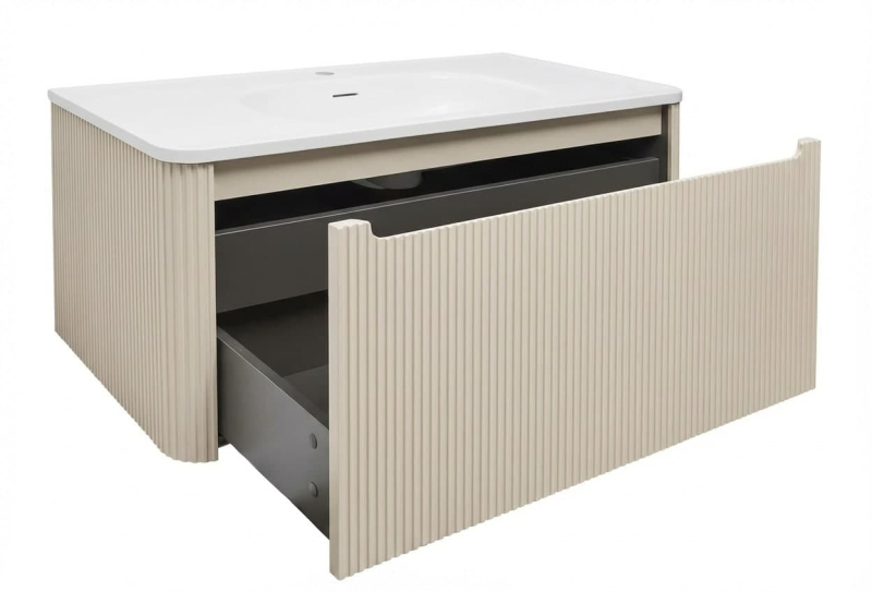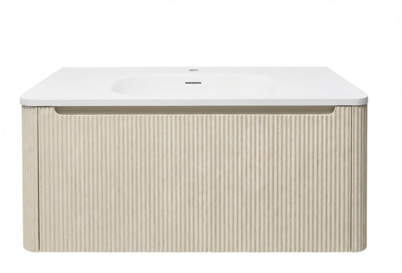 Závěsná koupelnová skříňka s umyvadlem z litého mramoru v barevném provedení light pine s matným povrchem o rozměru 119x47,5x45 cm. Povrch v provedení fólie. S plnovýsuvem a dotahem.