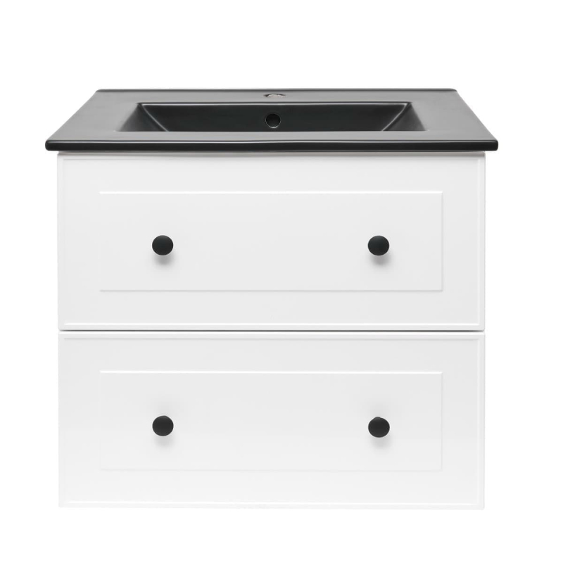Závěsná koupelnová skříňka s keramickým umyvadlem v bílé barvě s lesklým povrchem o rozměru 60x53x46 cm. Povrch v provedení fólie.