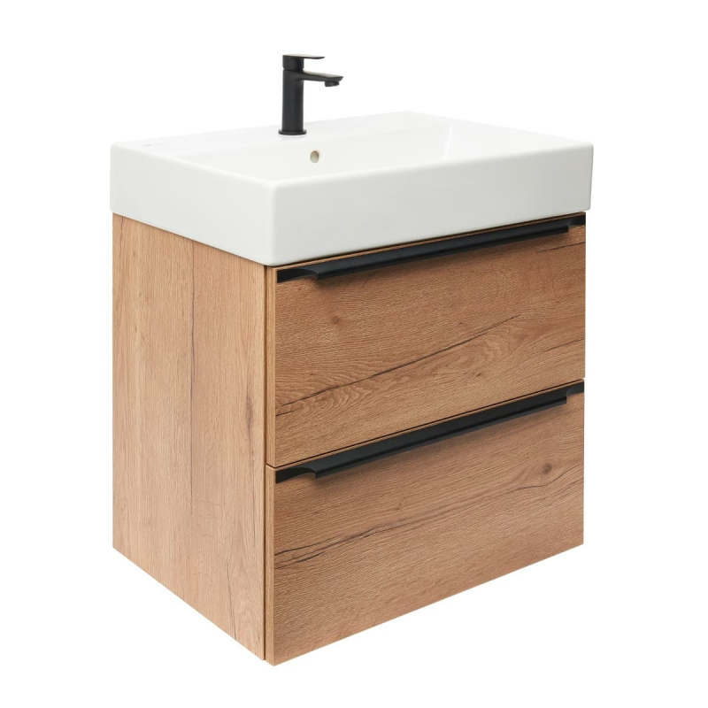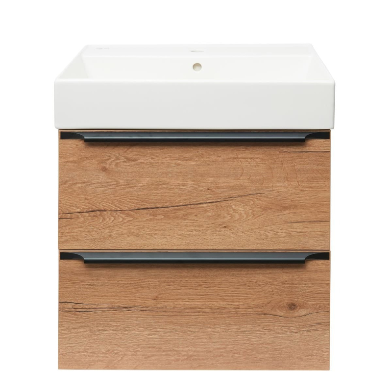 Závěsná koupelnová skříňka s keramickým umyvadlem v provedení dub Sierra s matným povrchem o rozměru 60x60x46 cm. Povrch v provedení lamino.