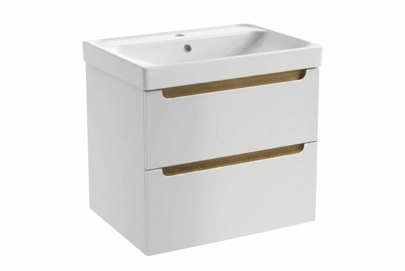 Závěsná koupelnová skříňka s keramickým umyvadlem v bílé barvě s lesklým povrchem o rozměru 60x60x45 cm. s povrchem z MDF desky