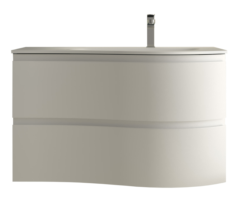 Závěsné koupelnová skříňka s umyvadlem z litého mramoru v bílé barvě s matným povrchem o rozměru 91x55,6x51 cm. S lakovaným povrchem. S plnovýsuvem a dotahem.