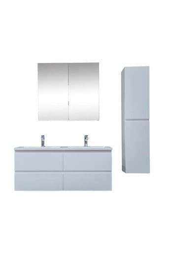 Závěsná koupelnová skříňka s umyvadlem z litého mramoru v bílé barvě v lesklém provedení o rozměru 119x50x45 cm. Povrch v provedení lamino. Včetně zrcadla.