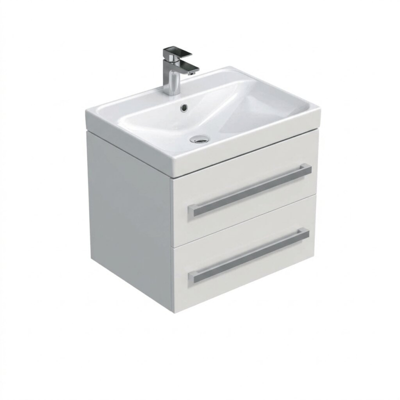 Závěsná koupelnová skříňka s keramickým umyvadlem v barevném provedení dub hickory s matným povrchem o rozměru 60x53x46 cm. Povrch v provedení lamino.