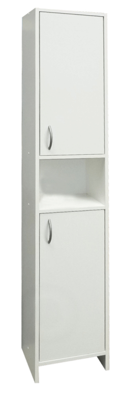 SIKO vysoká doplňková skříňka do koupelny ze série Praxis. Boky i přední plochy jsou v provedení lamino mat. Součástí dodávky jsou úchytky. Tato koupelnová skříňka má 1 poličku za horními dvířky a jednu poličku za spodními dvířky.