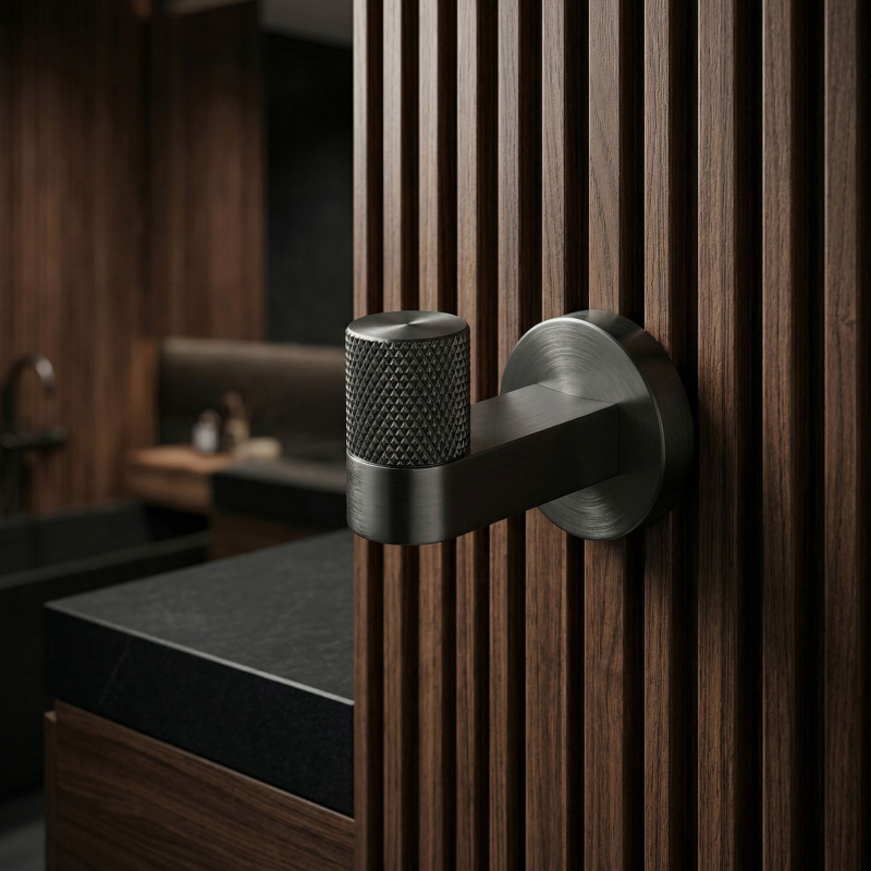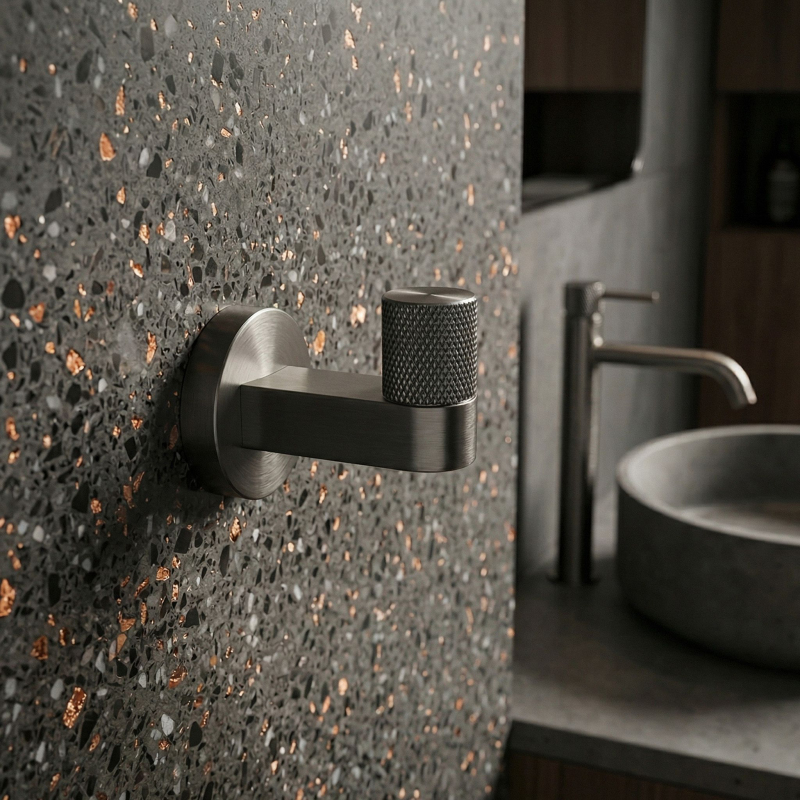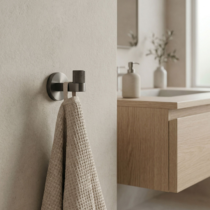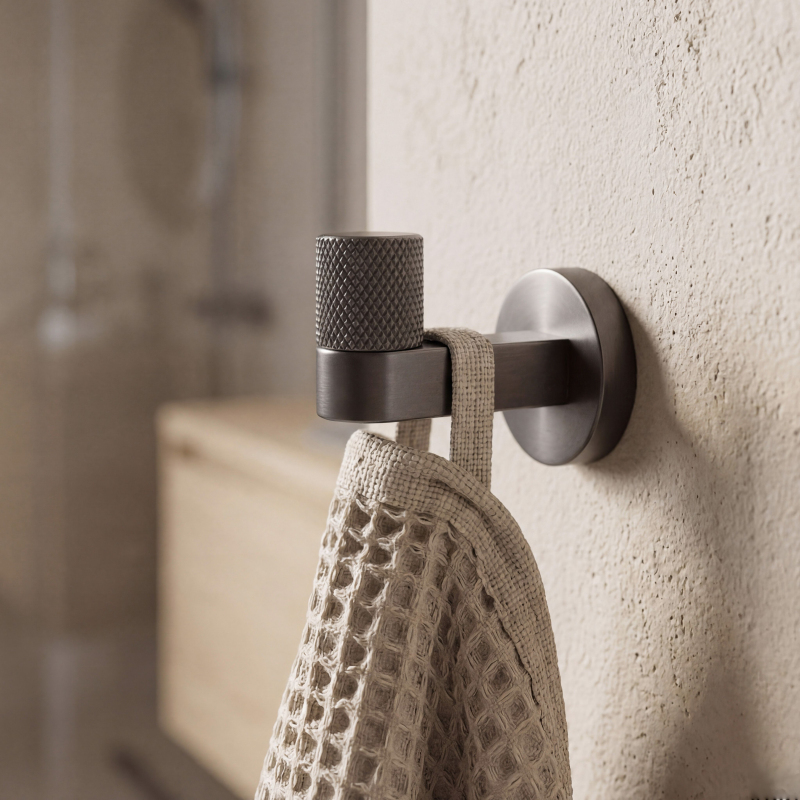 Dbejte na pořádek a elegantní detail ve své koupelně s bodovým koupelnovým věšákem Ori v barvě titanu. Tento stylový, kompaktní háček dokonale zapadá do nejnovějších trendů a kombinuje minimalistickou formu se šperkovým zakončením.Povrchová úprava Titan – hluboký, tmavě šedý odstín titanu dodává interiéru moderní, lehce industriální a mimořádně elegantní charakter. Kartáčovaný povrch usnadňuje údržbu a účinně maskuje drobné stopy používání.Ozdobné vroubkování – přední část věšáku byla obohacena o precizní, vroubkovanou strukturu. Tento decentní, rýhovaný detail představuje jedinečnou ozdobu, která přitahuje pohled a zdůrazňuje vysokou kvalitu zpracování produktu.Robustní kovová konstrukce – vyrobení z vysoce kvalitního kovu zaručuje plnou stabilitu, odolnost a odolnost proti vlhkosti v koupelně, ideálně se hodí i pod váhu ručníků nebo županů.Pevná montáž na stěnu – věšák se upevňuje na vruty, což zajišťuje maximální bezpečnost při každodenním používání. Skrytý systém upevnění umožňuje zachovat dokonalou estetiku na stěně.Kompletní kolekce – v naší nabídce najdete i další doplňky ze série Ori, díky čemuž vytvoříte ucelené a harmonické uspořádání celého interiéru.Výběrem koupelnového věšáku Ori kartáčovaný titan volíte ideální spojení moderního designu s napolehlivou funkčností.