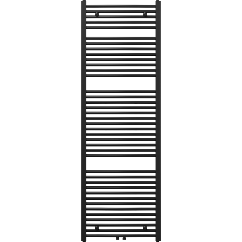 Technické údaje: Výška: 1800 mm Šířka: 600 mm Hloubka: 56 mm Rozteč připojení: - 55 cm (dole) nebo 5 cm (uprostřed) Barva: Černá RAL 9005 Materiál: Ocel Hmotnost: 14,47 kg Reakce na oheň: A1 Provozní teplota: max. 95 °C Maximální provozní tlak: 0,6 MPa Topný výkon: - 75/65/20 °C - 958 W Připojení: - 2xG ½″ uprostřed - 4xG ½″ shora a zdola na pravé nebo levé straně Možnost instalace topení Vysoce kvalitní, odolný, korozivzdorný nátěr Sada obsahuje: zavěšení, montážní sadu, záslepky a odvzdušňovací otvor