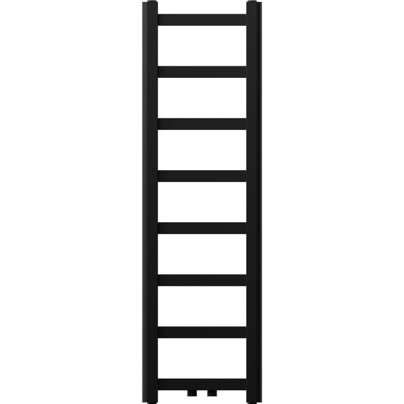 Technické údaje: Výška: 1000 mm Šířka: 300 mm Hloubka: 40 mm Rozteč připojení: - 25 cm (dole) nebo 5 cm (uprostřed) Barva: Černá RAL 9005 Materiál: Ocel Hmotnost: 4,22 kg Reakce na oheň: A1 Provozní teplota: max. 95 °C Maximální provozní tlak: 0,6 MPa Topný výkon: - 75/65/20 °C - 197 W Připojení: - 2xG ½″ uprostřed - 4xG ½″ shora a zdola na pravé nebo levé straně Možnost instalace topného tělesa Vysoce kvalitní, odolný, korozivzdorný nátěr Sada obsahuje: zavěšení, montážní sadu, záslepky a odvzdušňovací otvor
