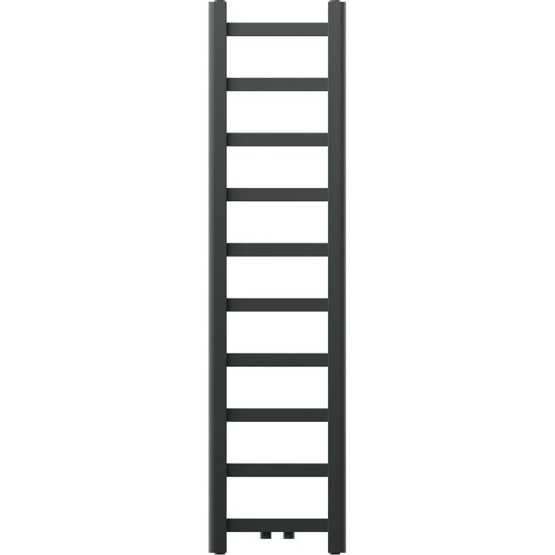 Technické údaje: Výška: 1200 mm Šířka: 300 mm Hloubka: 40 mm Rozteč připojení: - 25 cm (dole) nebo 5 cm (uprostřed) Barva: Antracitová RAL 7016 Materiál: Ocel Hmotnost: 5,05 kg Reakce na oheň: A1 Provozní teplota: max. 95 °C Maximální provozní tlak: 0,6 MPa Topný výkon: - 75/65/20 °C - 240 W Připojení: - 2xG ½″ uprostřed - 4xG ½″ shora a zdola na pravé nebo levé straně Možnost instalace topného tělesa Vysoce kvalitní, odolný, korozivzdorný nátěr Sada obsahuje: zavěšení, montážní sadu, záslepky a odvzdušňovací otvor