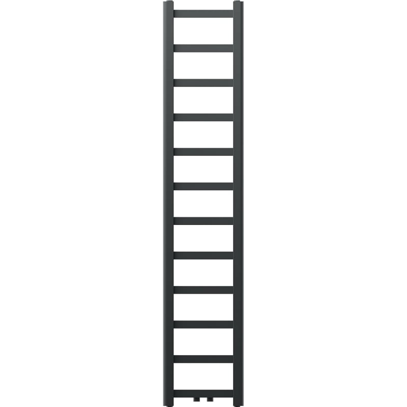 Technické údaje: Výška: 1500 mm Šířka: 300 mm Hloubka: 40 mm Rozteč připojení: - 25 cm (dole) nebo 5 cm (uprostřed) Barva: Černá RAL 9005 Materiál: Ocel Hmotnost: 6,16 kg Reakce na oheň: A1 Provozní teplota: max. 95 °C Maximální provozní tlak: 0,6 MPa Topný výkon: - 75/65/20 °C - 295 W Připojení: - 2xG ½″ uprostřed - 4xG ½″ shora a zdola na pravé nebo levé straně Možnost instalace topného tělesa Vysoce kvalitní, odolný, korozivzdorný nátěr Sada obsahuje: zavěšení, montážní sadu, záslepky a odvzdušňovací otvor