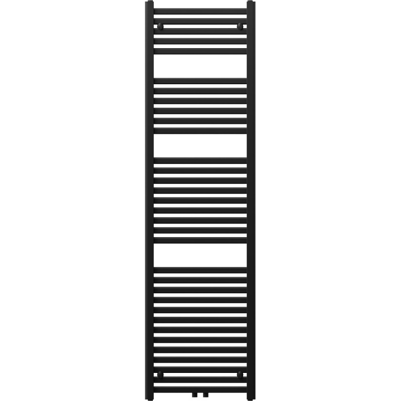 Technické údaje: Výška: 1800 mm Šířka: 500 mm Hloubka: 30 mm Rozteč připojení: - 45 cm (dole) nebo 5 cm (uprostřed) Barva: Černá RAL 9005 Materiál: Ocel Hmotnost: 13,74 kg Reakce na oheň: A1 Provozní teplota: max. 95 °C Maximální provozní tlak: 0,6 MPa Topný výkon: - 75/65/20 °C - 854 W Připojení: - 2xG ½″ uprostřed - 4xG ½″ shora a zdola na pravé nebo levé straně Možnost instalace topného tělesa Vysoce kvalitní, odolný nátěr odolný proti korozi Sada obsahuje: závěsy, montážní sadu, záslepky a odvzdušňovací otvor