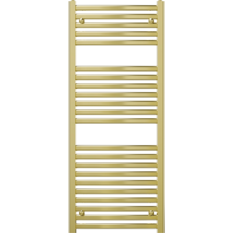 Technické údaje: Výška: 1200 mm Šířka: 500 mm Hloubka: 64 mm Rozteč připojení: 45 cm Barva: Zlatá Materiál: Ocel Hmotnost: 9,65 kg Reakce na oheň: A1 Provozní teplota: max. 95 °C Maximální provozní tlak: 0,6 MPa Topný výkon: - 75/65/20 °C - 448 W Připojení: - 4xG ½″ shora a zdola na pravé nebo levé straně Možnost instalace topného tělesa Vysoce kvalitní, odolný, korozivzdorný nátěr Sada obsahuje: závěsy, montážní sadu, záslepky a odvzdušňovací otvor