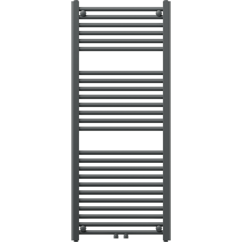 Technické údaje: Výška: 1200 mm Šířka: 500 mm Hloubka: 30 mm Rozteč připojení: - 45 cm (dole) nebo 5 cm (uprostřed) Barva: Antracitová RAL 7016 Materiál: Ocel Hmotnost: 8,23 kg Reakce na oheň: A1 Provozní teplota: max. 95 °C Maximální provozní tlak: 0,6 MPa Topný výkon: - 75/65/20 °C - 528 W Připojení: - 2xG ½″ uprostřed - 4xG ½″ shora a zdola na pravé nebo levé straně Možnost instalace topného tělesa Vysoce kvalitní, odolný, korozivzdorný nátěr Sada obsahuje: zavěšení, montážní sadu, záslepky a odvzdušňovací otvor