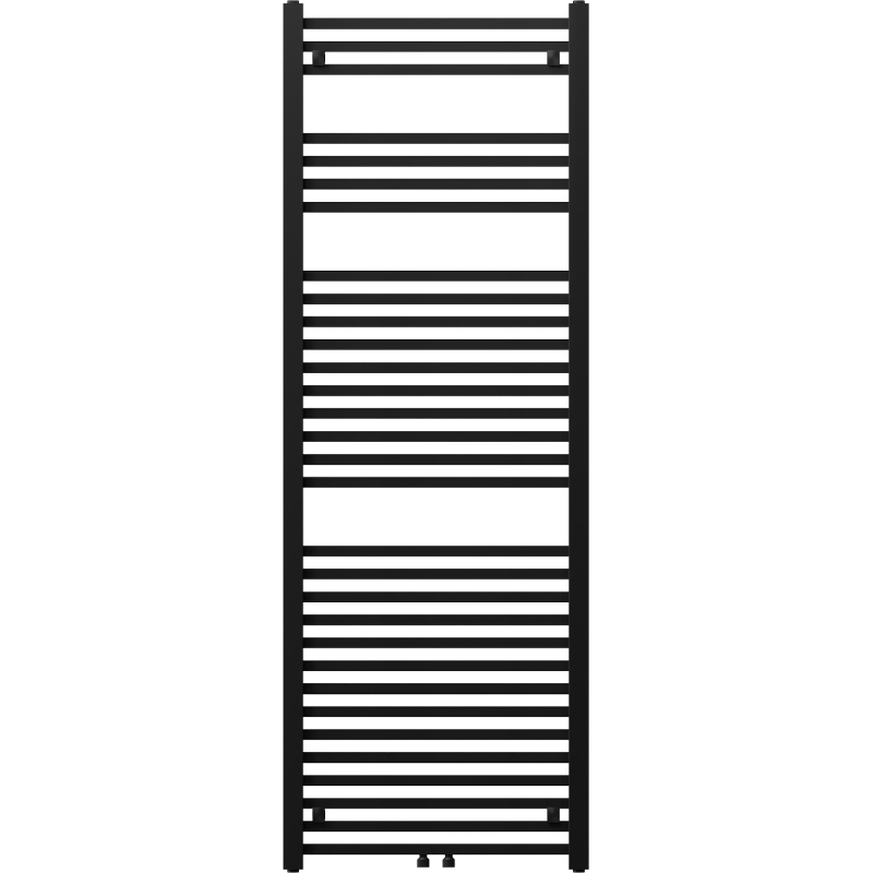 Technické údaje: Výška: 1700 mm Šířka: 600 mm Hloubka: 40 mm Rozteč připojení: - 56 cm (dole) nebo 5 cm (uprostřed) Barva: Černá RAL 9005 Materiál: Ocel Hmotnost: 17,49 kg Reakce na oheň: A1 Provozní teplota: max. 95 °C Maximální provozní tlak: 0,6 MPa Topný výkon: - 75/65/20 °C - 991 W Připojení: - 2xG ½″ uprostřed - 4xG ½″ shora a zdola na pravé nebo levé straně Možnost instalace topného tělesa Vysoce kvalitní, odolný, korozivzdorný nátěr Sada obsahuje: zavěšení, montážní sadu, záslepky a odvzdušňovací otvor