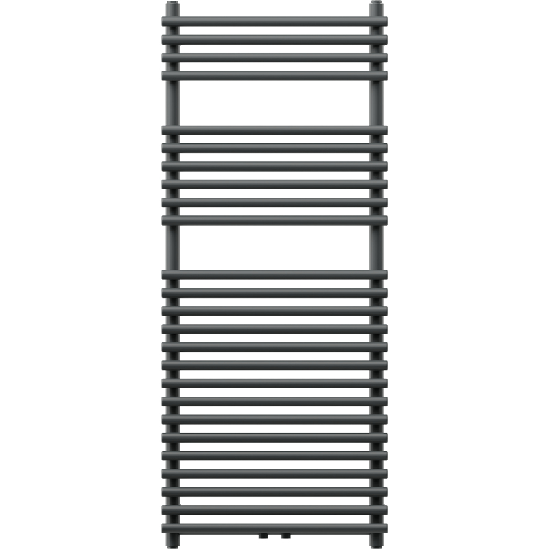 Technické údaje: Výška: 1200 mm Šířka: 500 mm Hloubka: 53 mm Rozteč připojení: - 45 cm (dole) nebo 5 cm (uprostřed) Barva: Antracitová RAL 7016 Materiál: Ocel Hmotnost: 10,51 kg Reakce na oheň: A1 Provozní teplota: max. 95 °C Maximální provozní tlak: 0,6 MPa Topný výkon: - 75/65/20 °C - 569 W Připojení: - 2xG ½″ uprostřed - 4xG ½″ shora a zdola na pravé nebo levé straně Možnost instalace topného tělesa Vysoce kvalitní, odolný, korozivzdorný nátěr Sada obsahuje: zavěšení, montážní sadu, záslepky a odvzdušňovací otvor