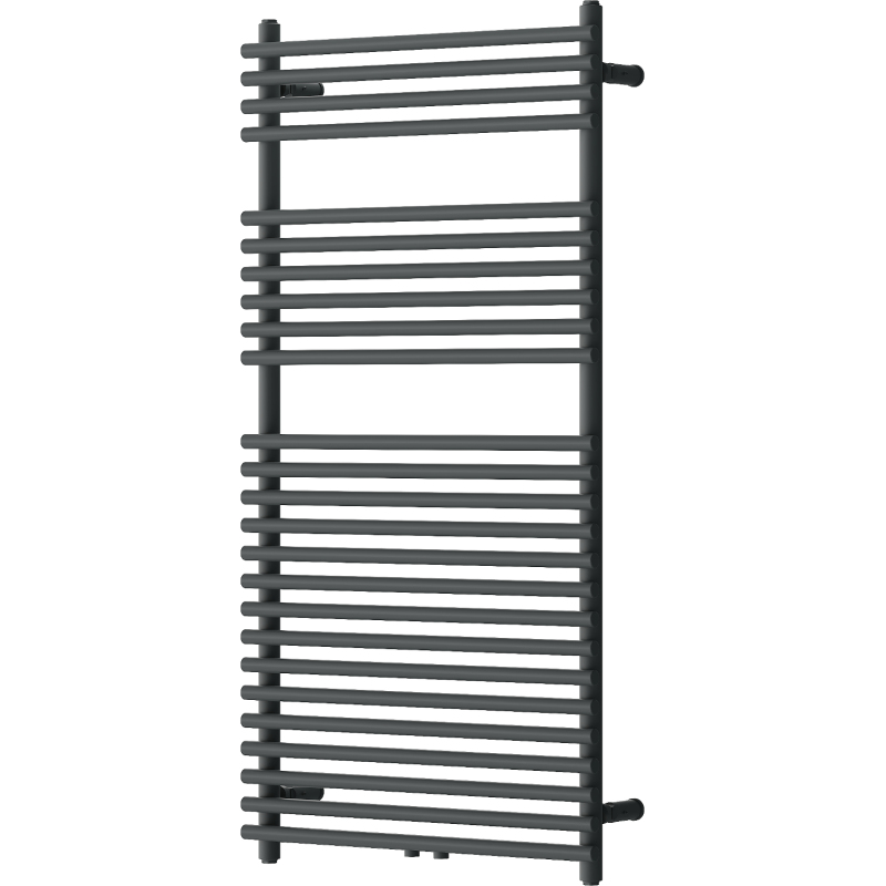 Technické údaje: Výška: 1200 mm Šířka: 600 mm Hloubka: 53 mm Rozteč připojení: - 55 cm (dole) nebo 5 cm (uprostřed) Barva: Antracitová RAL 7016 Materiál: Ocel Hmotnost: 11,78 kg Reakce na oheň: A1 Provozní teplota: max. 95 °C Maximální provozní tlak: 0,6 MPa Topný výkon: - 75/65/20 °C - 658 W Připojení: - 2xG ½″ uprostřed - 4xG ½″ shora a zdola na pravé nebo levé straně Možnost instalace topného tělesa Vysoce kvalitní, odolný nátěr odolný proti korozi Sada obsahuje: závěsy, montážní sadu, záslepky a odvzdušňovací otvor