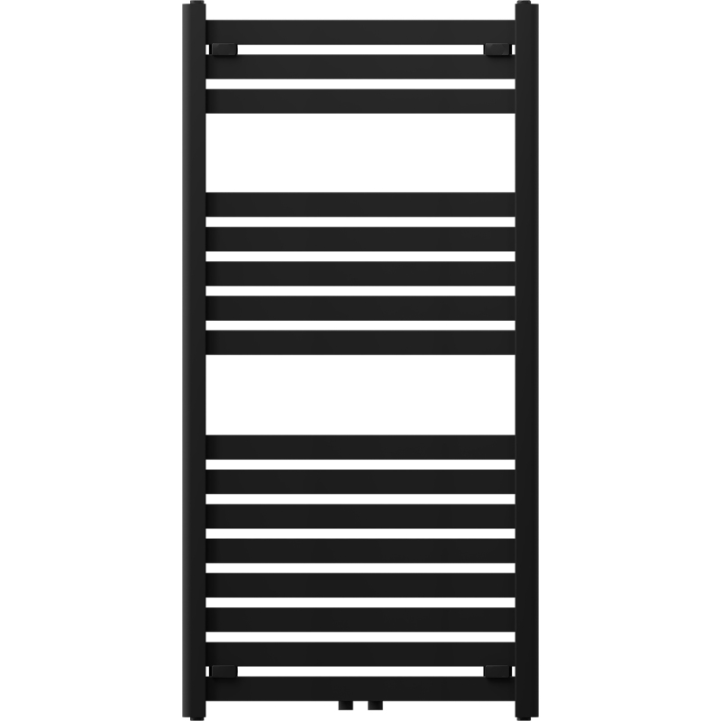 Technické údaje: Výška: 1200 mm Šířka: 600 mm Hloubka: 39 mm Rozteč připojení: - 55 cm (dole) nebo 5 cm (uprostřed) Barva: Černá RAL 9005 Materiál: Ocel Hmotnost: 12,36 kg Reakce na oheň: A1 Provozní teplota: max. 95 °C Maximální provozní tlak: 0,4 MPa Topný výkon: - 75/65/20 °C - 623 W Připojení: - 2xG ½″ uprostřed - 4xG ½″ shora a zdola na pravé nebo levé straně Možnost instalace topného tělesa Vysoce kvalitní, odolný, korozivzdorný nátěr Sada obsahuje: zavěšení, montážní sadu, záslepky a odvzdušňovací otvor