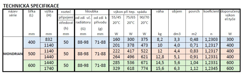 Dostupné rozměry radiátoru MONDRIAN do koupelny: