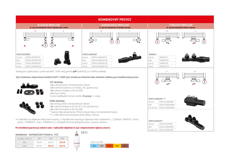 Radiátory jsou dodávány BEZ topné tyče, za rozměrem je pouze uveden doporučený výkon elektrické topné tyče pro tento rozměr.