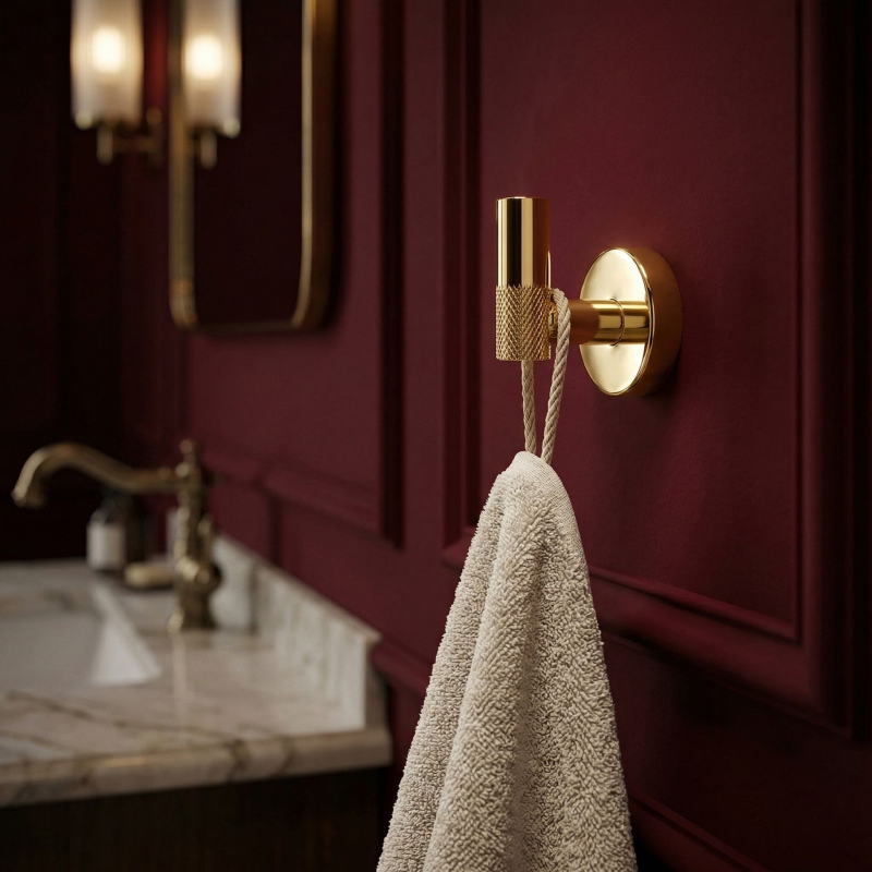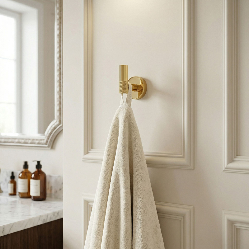 Praktický a elegantní koupelnový věšák Modern ve zlaté barvě je funkční prvek vybavení, který se osvědčí v moderních i klasických aranžmá interiérů. Je vyroben kompletně z vysoce kvalitního kovu, což zaručuje plnou odolnost proti vlhkosti, korozi a každodennímu používání po léta.Vysoce kvalitní kov – zajišťuje spolehlivost a odolnost konstrukce v náročném koupelnovém prostředí.Elegantní zlatá povrchová úprava – dodává interiéru luxusní charakter a dokonale ladí s moderní armaturou a doplňky.Minimalistická forma s rýhováním – unikátní textura na konci věšáku zabraňuje sklouzávání ručníků nebo županů a dodává celku moderní šmrnc.Solidní montáž na stěnu – umožňuje ušetřit místo, udržet v koupelně pořádek a zajišťuje pevné uchycenie i pod zátěží.Koupelnový věšák Modern je ideální volbou pro osoby oceňující harmonii designu a užitečnosti. Perfektní povrchová úprava ve zlaté barvě dělá z tohoto drobného akcentu stylovou ozdobu každé koupelnové zóny. Díky solidní konstrukci a důrazu na detaily získáváte jistotu komfortu a spolehlivosti každý den.