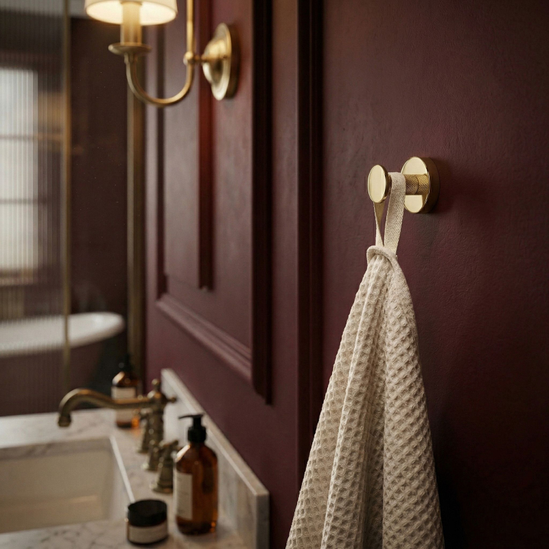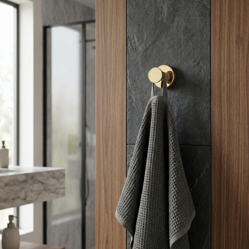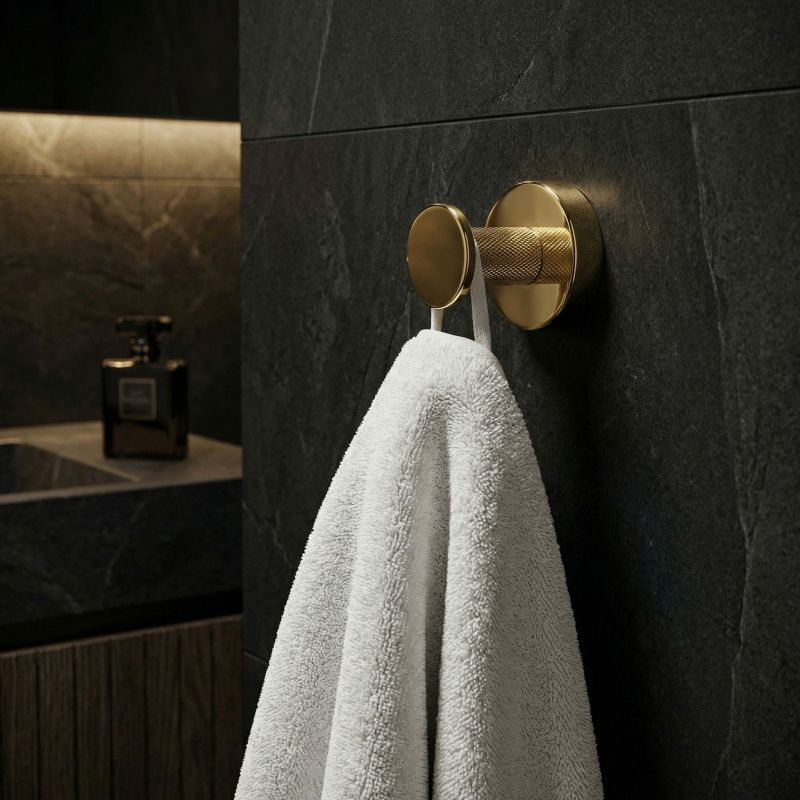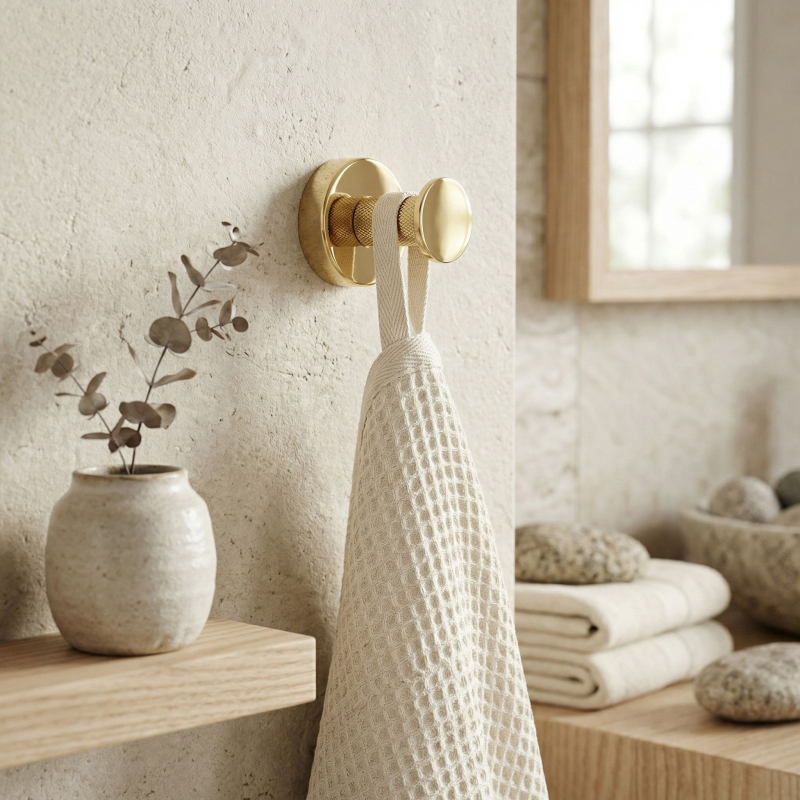 Praktický a elegantní koupelnový věšák Modern ve zlaté barvě je funkční prvek vybavení, který se osvědčí v moderních i klasických aranžmá interiérů. Je vyroben kompletně z vysoce kvalitního kovu, což zaručuje plnou odolność proti vlhkosti, korozi a každodennímu používání po léta.Vysoce kvalitní kov – zajišťuje spolehlivost a odolnost konstrukce v náročném koupelnovém prostředí.Elegantní zlatá povrchová úprava – dodává interiéru luxusní charakter a dokonale ladí s moderní armaturou a doplňky.Minimalistická forma s rýhováním – unikátní textura na dříku věšáku zabraňuje sklouzávání ručníků nebo županů a dodává celku moderní šmrnc.Solidní montáž na stěnu – umožňuje ušetřit místo, udržet v koupelně pořádek a zajišťuje pevné uchycení i pod zátěží.Koupelnový věšák Modern je ideální volbou pro osoby oceňující harmonii designu a užitečnosti. Perfektní povrchová úprava ve zlaté barvě dělá z tohoto drobného akcentu stylovou ozdobu každé koupelnové zóny. Díky solidní konstrukci a důrazu na detaily získáváte jistotu komfortu a spolehlivosti každý den.
