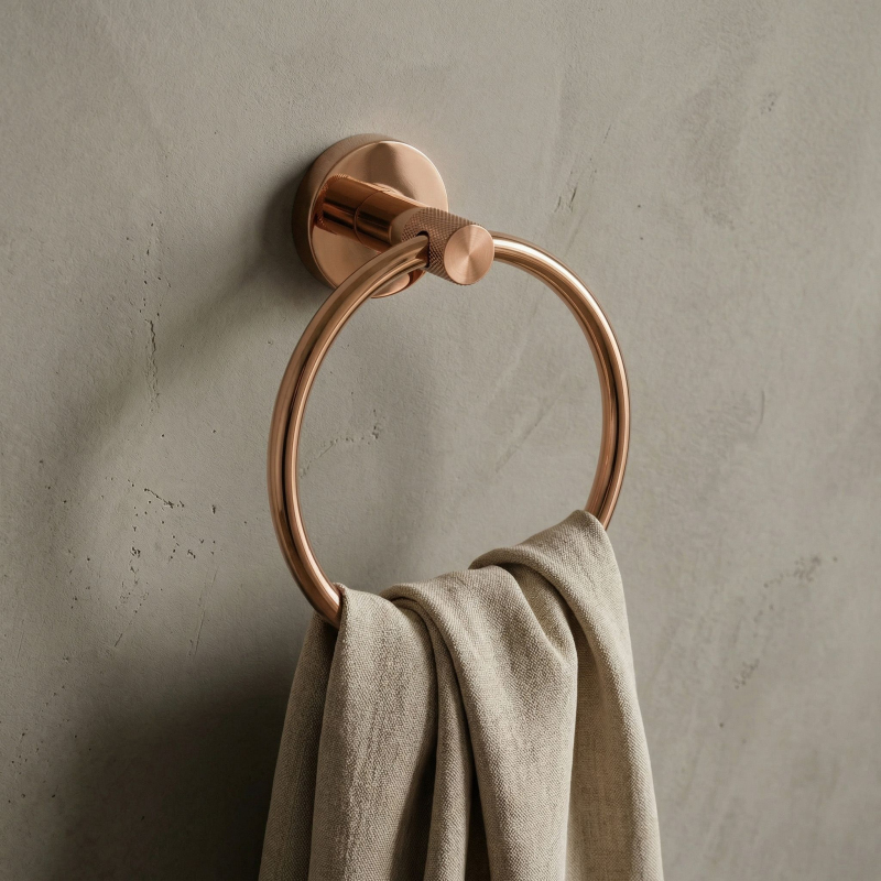 Zajistěte si dokonalý pořádek a minimalistický styl ve své koupelně díky kulatému věšáku na ručníky Modern. Jeho univerzální povrchová úprava v barvě mědi dokonale zapadá do moderních trendů a spojuje eleganci s praktickým využitím. Vyroben z vysoce kvalitního kovu, zajišťuje odolnost a plnou odolnost proti vlhkosti, což zaručuje spolehlivost na dlouhá léta.Vysoce kvalitní kov – zaručuje odolnost proti korozi a každodennímu používání ve vlhkém koupelnovém prostředí.Elegantní měděná povrchová úprava – dodává interiéru luxusní, hřejivý charakter a dokonale ladí s moderní armaturou.Forma prstence – umožňuje estetické vystavení ručníku na ruce, zajišťuje jeho rychlé schnutí a snadný přístup.Vroubkované zdobení úchytu – unikátní textura na upevňovacím prvku dodává moderní, industriální šmrnc a odlišuje produkt od klasických řešení.Solidní montáž přišroubováním – zajišťuje maximální stabilitu a jistotu upevnění ke stěně, čímž eliminuje riziko uvolnění konstrukce.Věšák na ručníky Modern je vynikající volbou pro ty, kteří oceňují harmonické spojení estetiky a funkčnosti. Díky své geometrické formě se tento produkt stává decentní ozdobou každé zóny u umyvadla. Výběrem tohoto řešení získáváte jistotu, že Vaše koupelnové doplňky budou vždy po ruce a dodají interiéru eleganci i moderní měděný lesk.