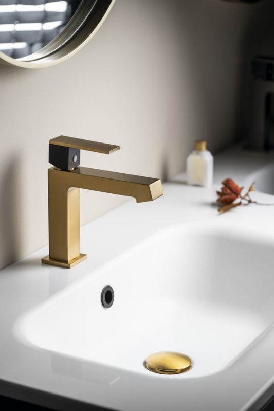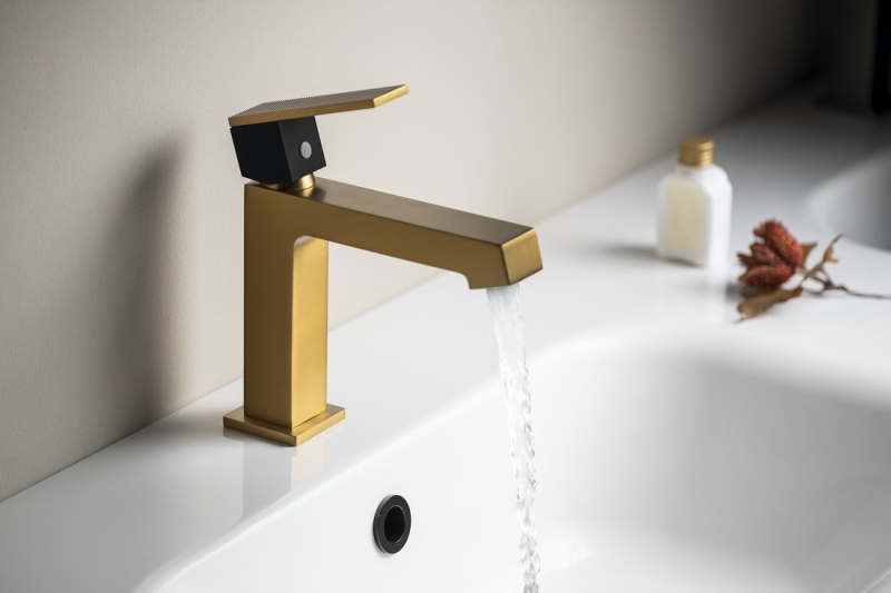 CUBEMIX stojánková umyvadlová baterie bez výpusti, zlato mat UBC-CM002GB