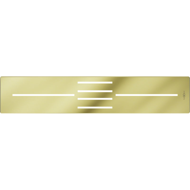 Technické údaje: Materiál: Nerezová ocel Povrchová úprava: Zlatá Šířka: 54,8 cm Výška: 10,8 cm Vhodné pro sprchové vaničky Toro o rozměrech 100–120 cm