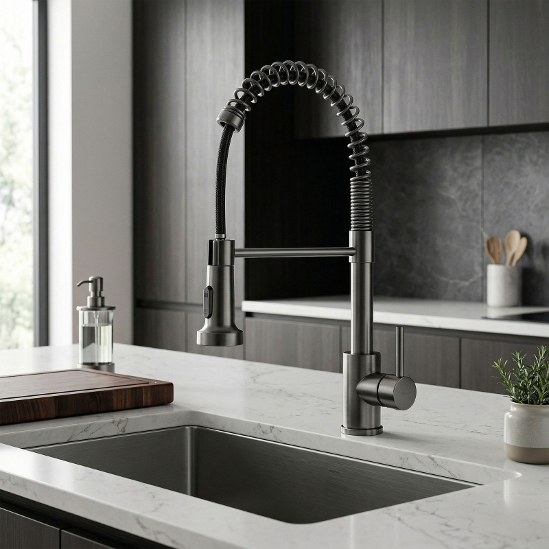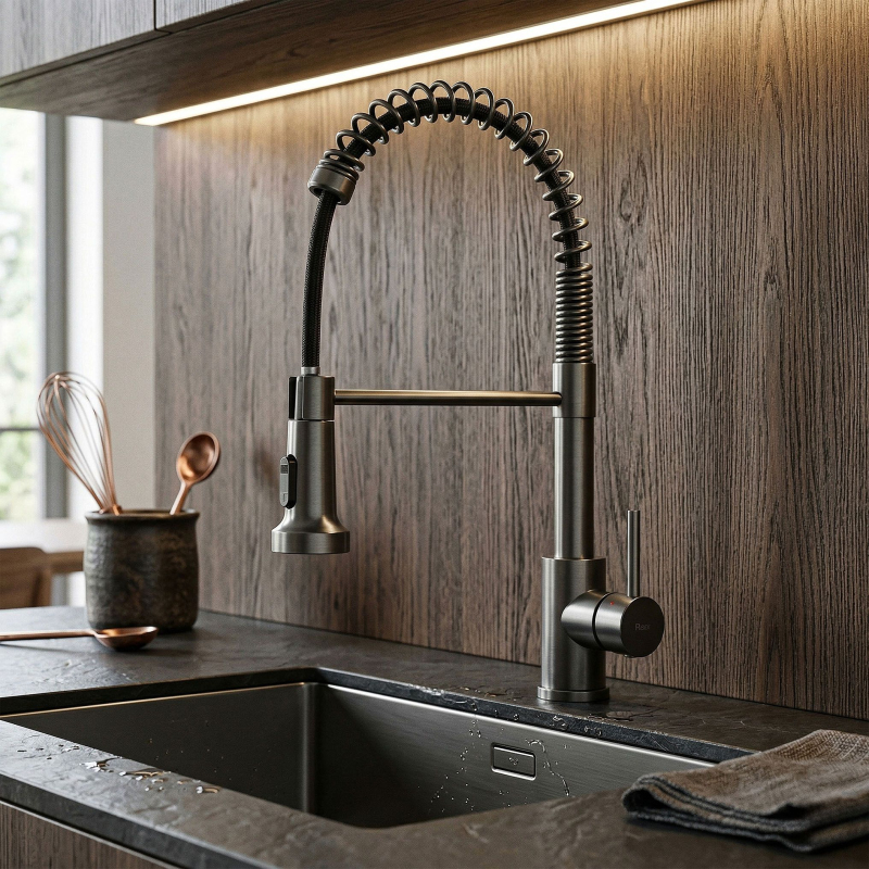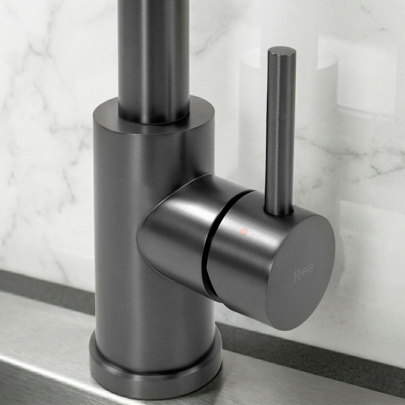 Objevte novou definici funkčnosti a stylu ve své kuchyni díky kuchyňské baterii Rea Colin Titan. Tento výjimečný model spojuje syrový, moderní design se spolehlivou technologií a představuje ideální doplněk interiérů ve stylu loft, industriálním a minimalistickém. Povrch v titanové barvě s jemně kartáčovanou strukturou dodává mycí zóně ušlechtilý, moderní charakter, který se skvěle kombinuje s betonem, dřevem nebo tmavými pracovními deskami.Technologie PVD povrchové úpravy – zaručuje mimořádnou odolnost proti poškrábání, korozi a změně barvy, díky čemuž si baterie zachovává bezchybný vzhled i při intenzivním každodenním používání.Flexibilní, ohebný výtok – umožňuje volné ovládání proudu vody v plném rozsahu, což výrazně usnadňuje mytí velkého nádobí, plechů do trouby i přesné oplachování dřezových vaniček.Dvoufunkční koncovka – praktický přepínač umožňuje okamžitou změnu mezi soustředěným a rozptýleným (sprchovým) proudem, což přináší úsporu vody a optimální přizpůsobení síly proudu aktuálním potřebám.Keramická kartuše – zaručuje bezporuchový provoz po dlouhá léta.Kartáčovaný povrch – elegantní titanové provedení působí mimořádně moderně a zároveň je praktické na údržbu, protože výrazně snižuje viditelnost otisků prstů a zaschlých kapek vody. Volbou kuchyňské baterie Rea Colin Titan investujete do produktu, který se stane centrálním dekorativním prvkem vaší kuchyně. Výjimečná titanová barva je skvělou alternativou ke klasickému chromu a vnáší do interiéru nádech luxusu a moderní elegance. Díky pevné konstrukci značky REA a promyšleným technickým řešením budou každodenní domácí práce jednodušší a výrazně příjemnější.