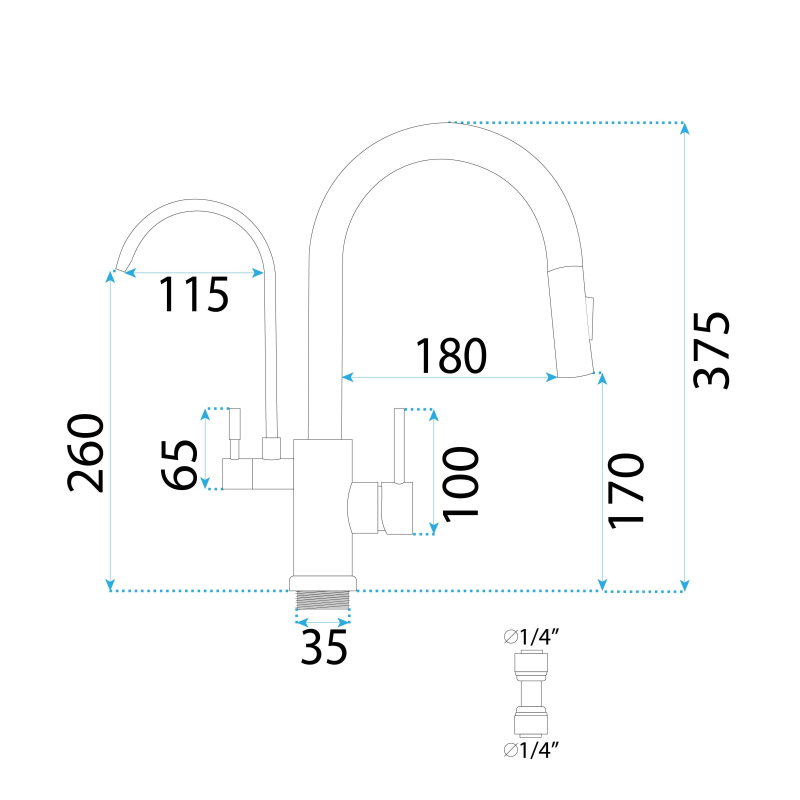 | Průměr připojení: | 3/8 palce |