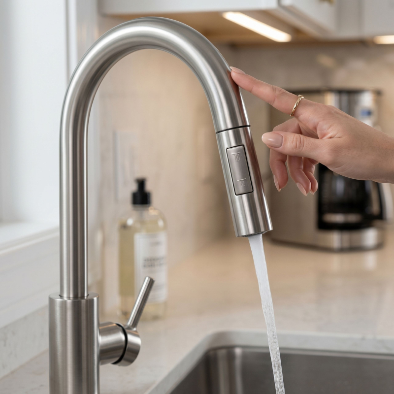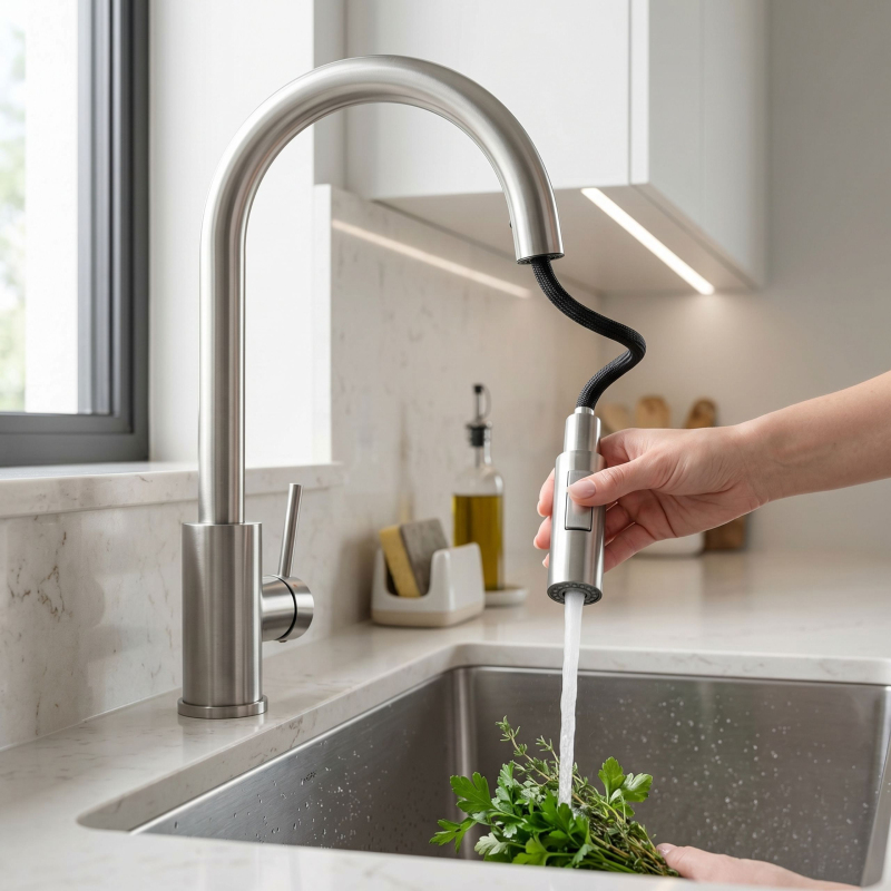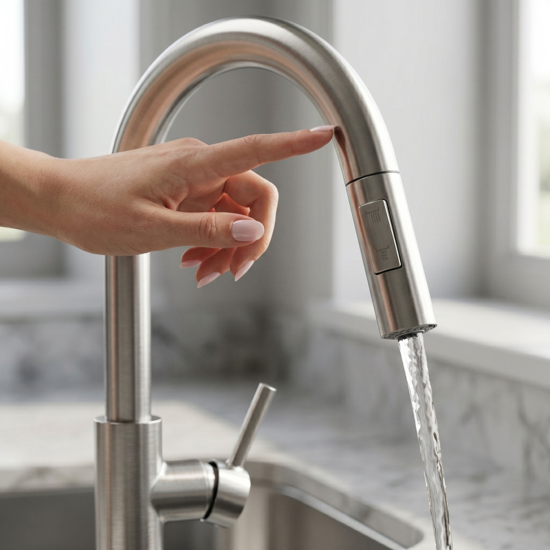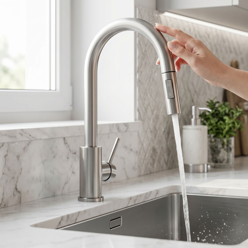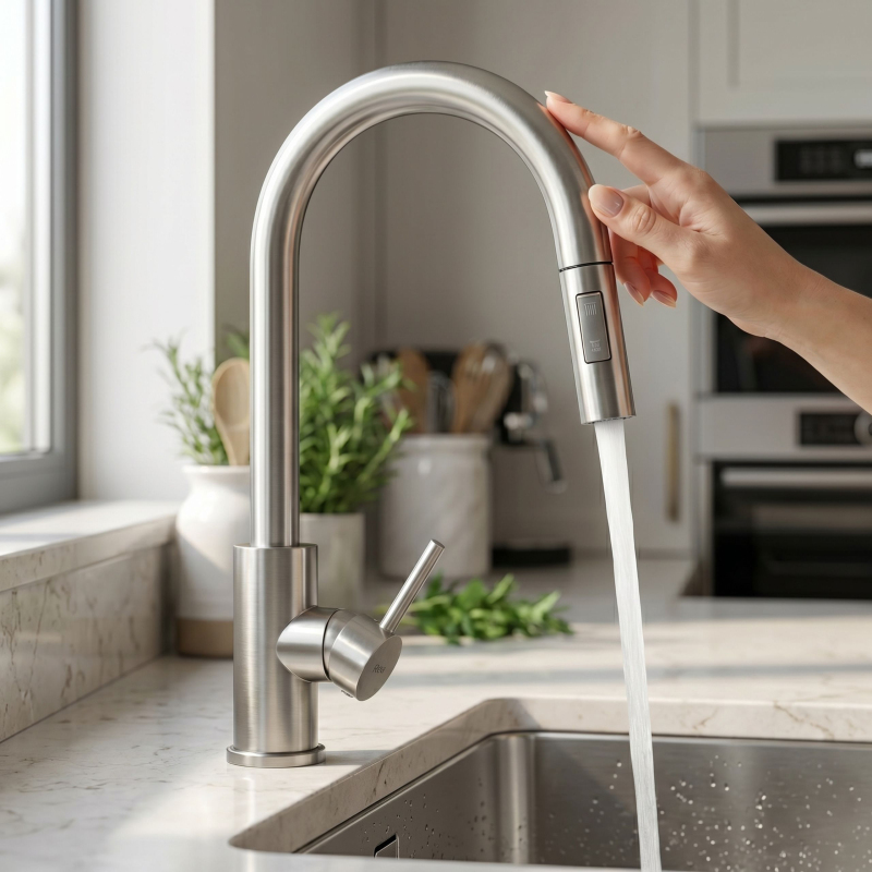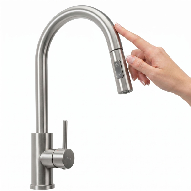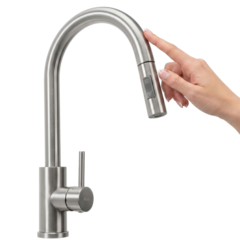 Spojte moderní design s funkčností díky kuchyňské baterii Rea Fresh Touch v elegantním broušeném provedení. Model je vybaven dotykovým systémem Touch, který umožňuje rychlé zapnutí a vypnutí vody dotykem výtoku – bez nutnosti použití rukou. Baterie má vytahovací výtok, který zvyšuje pracovní dosah a usnadňuje každodenní činnosti, jako je mytí nádobí nebo čištění dřezu. Díky dvoufukční spršce můžete pohodlně měnit režim proudu vody podle aktuálních potřeb.Systém Touch (dotykový) – umožňuje rychlé zapnutí a vypnutí vody dotykem výtoku.Senzor po celé délce výtoku – funguje kdekoli, bez nutnosti trefit konkrétní bod.Ovládání bez použití rukou – pomáhá zachovat vyšší úroveň hygieny při práci v kuchyni.Napájení 4 × bateriemi AA – není potřeba připojovat baterii k elektrické instalaci.Vytahovací výtok – zvyšuje pracovní dosah a usnadňuje mytí nádobí i čištění dřezu.Dvoufunkční sprška – umožňuje rychlou změnu režimu proudu vody.Otočný výtok 360° – zajišťuje volnost pohybu a pohodlí při používání.Jednopákové ovládání – umožňuje přesně nastavit teplotu a tlak vody.Moderní broušený design – elegantní a praktické provedení vhodné do kuchyní ve stylu loft, modern a minimalistickém. Povrchová úprava technologií PVD je zárukou mnohonásobně vyšší odolnosti proti poškrábání, poškození a stálosti barvy.Pevná konstrukce – zaručuje odolnost a dlouhou životnost při každodenním používání.Pevné tělo a moderní konstrukce zajišťují dlouhou životnost a pohodlí při používání, zatímco napájení senzoru pomocí 4 AA baterií eliminuje nutnost připojení k elektrické instalaci. Je to ideální řešení do moderních kuchyní, kde záleží na pohodlí, hygieně a rychlé obsluze.